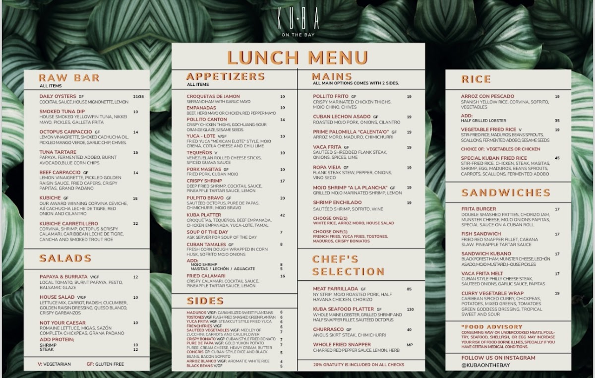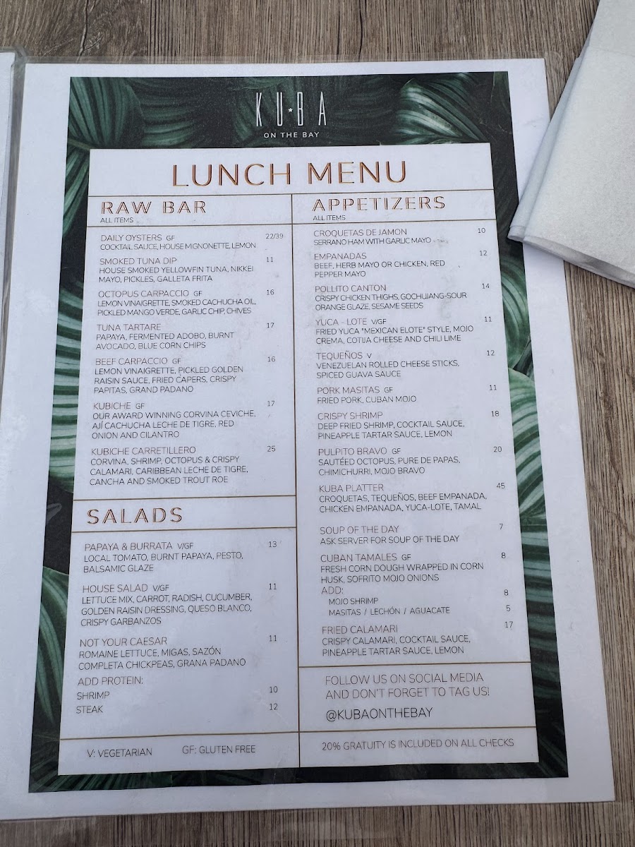 The warm atmosphere and exceptional service enhance the meal, creating a truly memorable outing. Whether you're here for lunch or dinner, Kuba On The Bay is a destination that promises great food, stunning views, and a lively vibe!